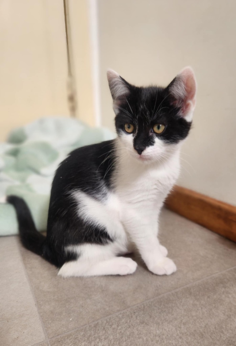 This cutie is so playful, friendly, affectionate, sweet and cute! everything you would want in a little kitten. We love black and white babies, sadly they are not the hardest to rehome - we have no idea why.