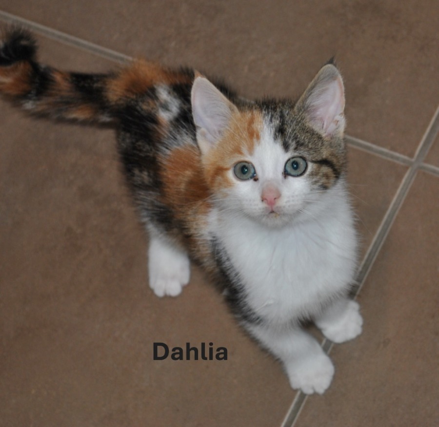 Meet Dahlia, the kitten with an abundance of energy and a playful spirit. Her sweetness is matched only by her friendliness, making her a joy to be around. She's a curious little one, always eager to explore the corners of her surroundings. Dahlia has grown accustomed to a strictly indoor lifestyle, and she thrives in it. She's also used to sharing her space with a small, cat-friendly dog. Her adaptable nature and lively personality make her a wonderful companion. Dahlia's zest for life is infectious, and she's ready to bring her love and energy into a forever home. Adopt Dahlia, and experience the joy of a kitten's love and curiosity every day.