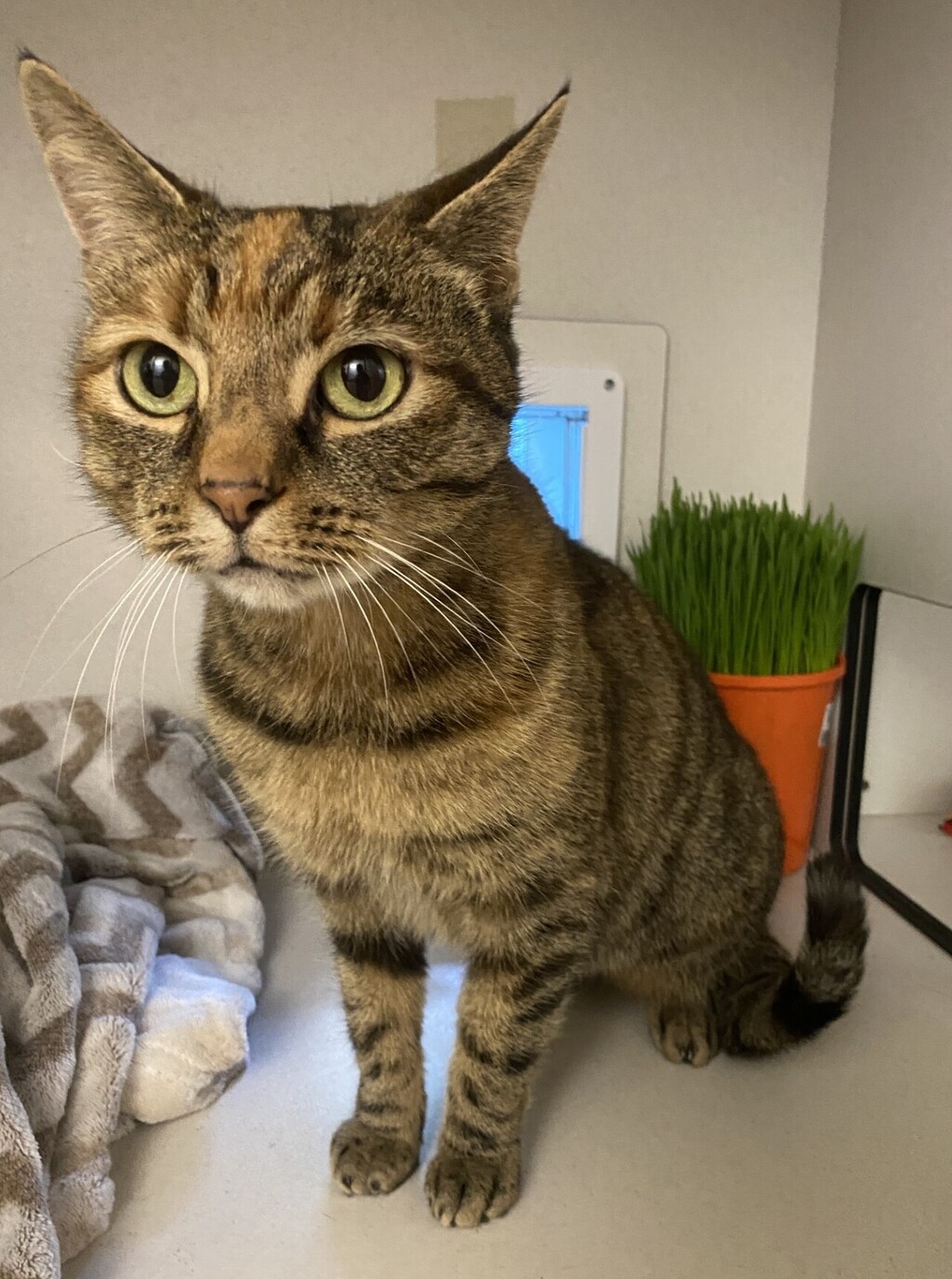 Meet Meadow, an adult feline companion who embodies a blend of sweetness and gentleness. Despite her shy demeanor, she is friendly and loyal, always seeking out a comforting presence. Her affectionate nature is evident in her soft purrs and the gentle nudge of her head against your hand, signaling her trust and love. Meadow has a unique ability to sense emotions, offering her comforting presence when you need it most. She's a constant companion, a loyal friend who asks for nothing more than your love in return. Adopt Meadow to experience the pure, unconditional love that only a pet can offer.