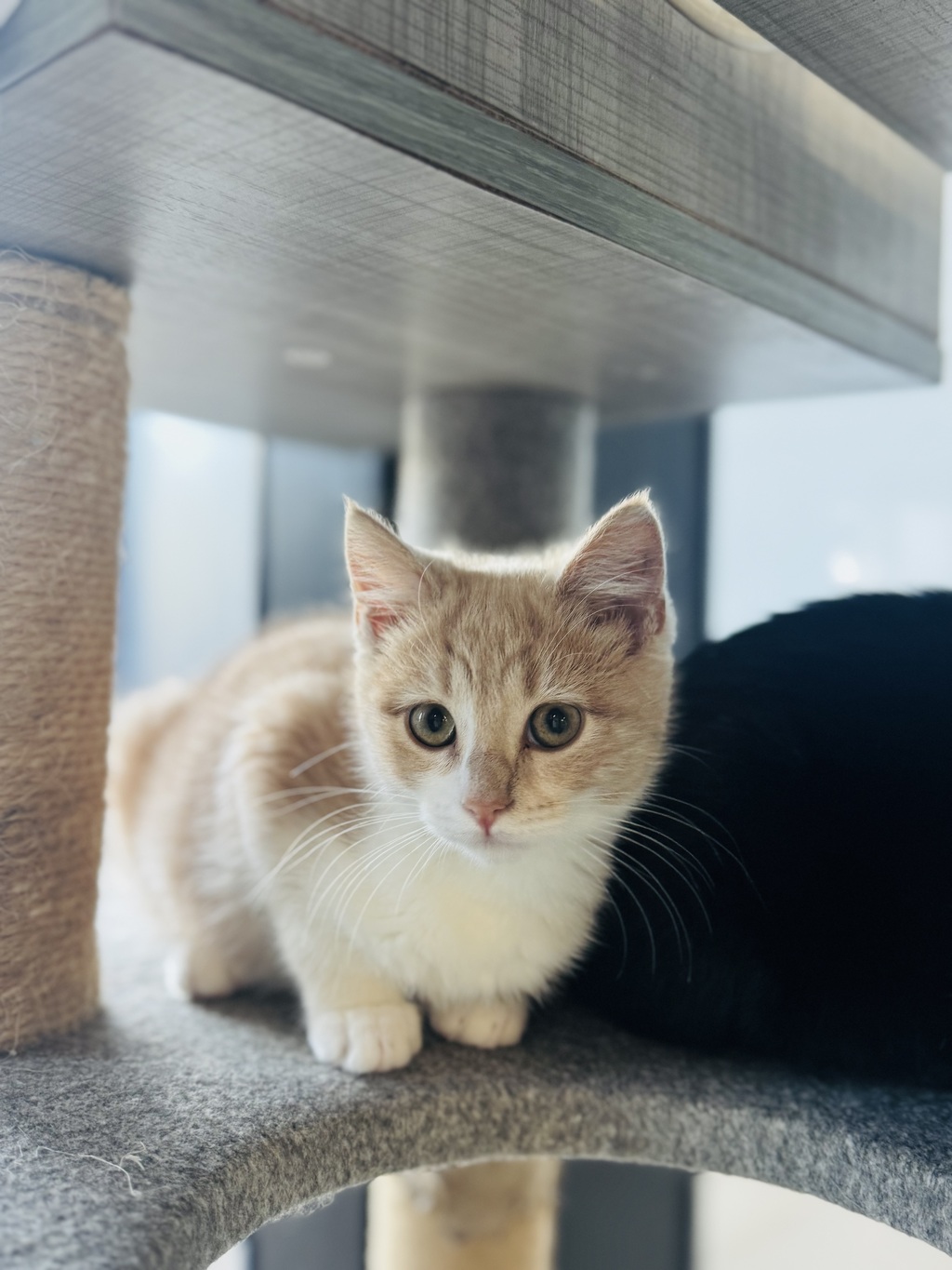 He isn't quite sure about playing with people just yet, but he'll happily engage in solo play or romp around with other cats. Because of that, Tigger would really benefit from having a confident, social cat in the home to show him the ropes and help him feel more secure.