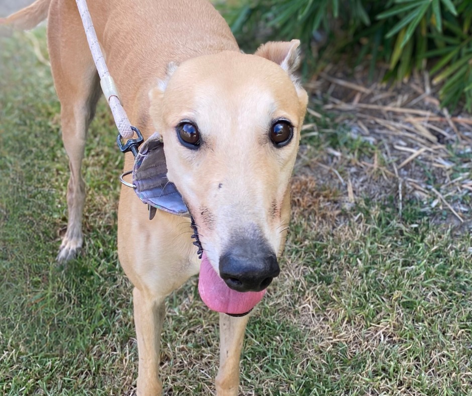 Sandy is a beautiful 5-year-old Greyhound with a calm nature and a heart full of love. She adores being around her people and will happily soak up your company, but she’s also content enjoying her own space and quiet moments.