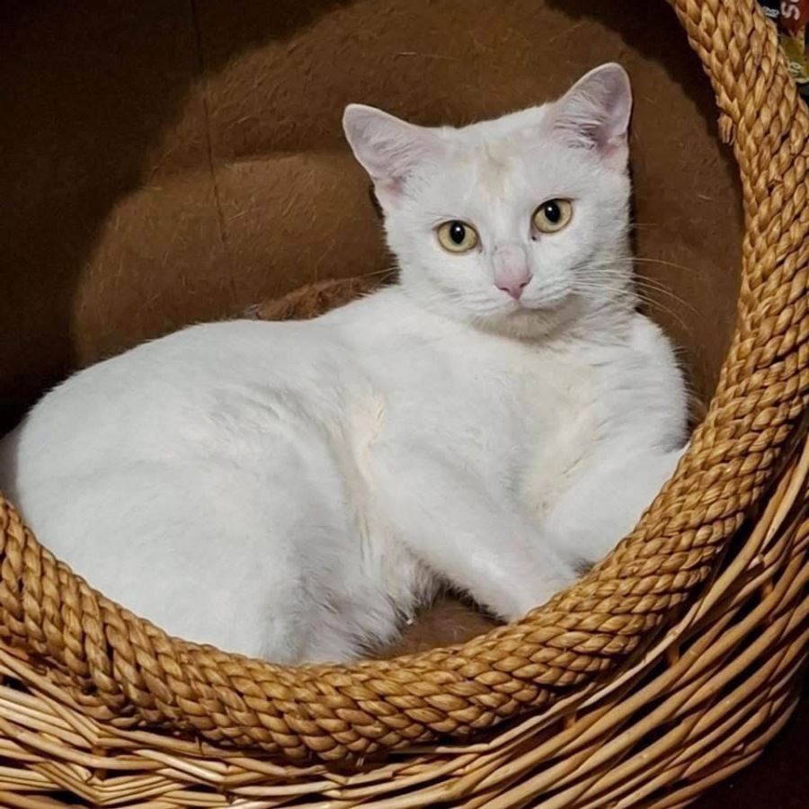 Medical Notes: Amara is pure white, due to this she will need to be a strictly indoor cat only as is at high risk of skin cancer; a shaded enclosed cat run would be ideal for her to enjoy some fresh air.