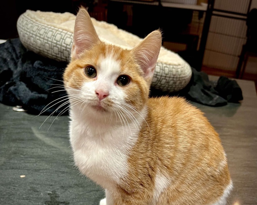 He is currently being fostered with his foster friend Leaf and multiple other cats and has integrated very easily.