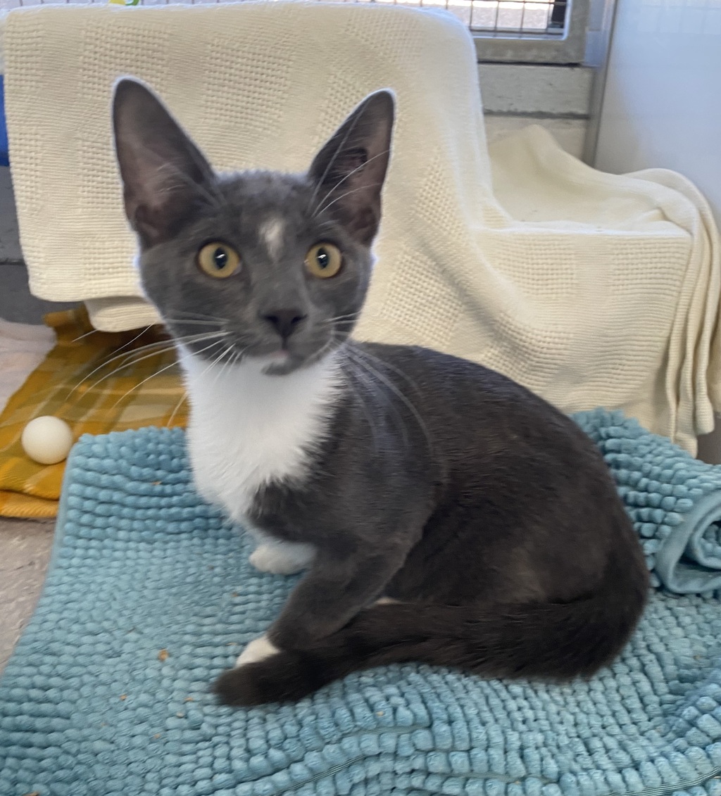 Meet Ambrose, the kitten with an infectious spirit! He's a friendly, curious, playful, and energetic young boy. His days are filled with boundless exploration and his energy is contagious, filling the room with joy. This outgoing boy is eager to find a family that will embrace his playful nature and endless curiosity. Adopting Ambrose means inviting a bundle of joy and companionship into your life.