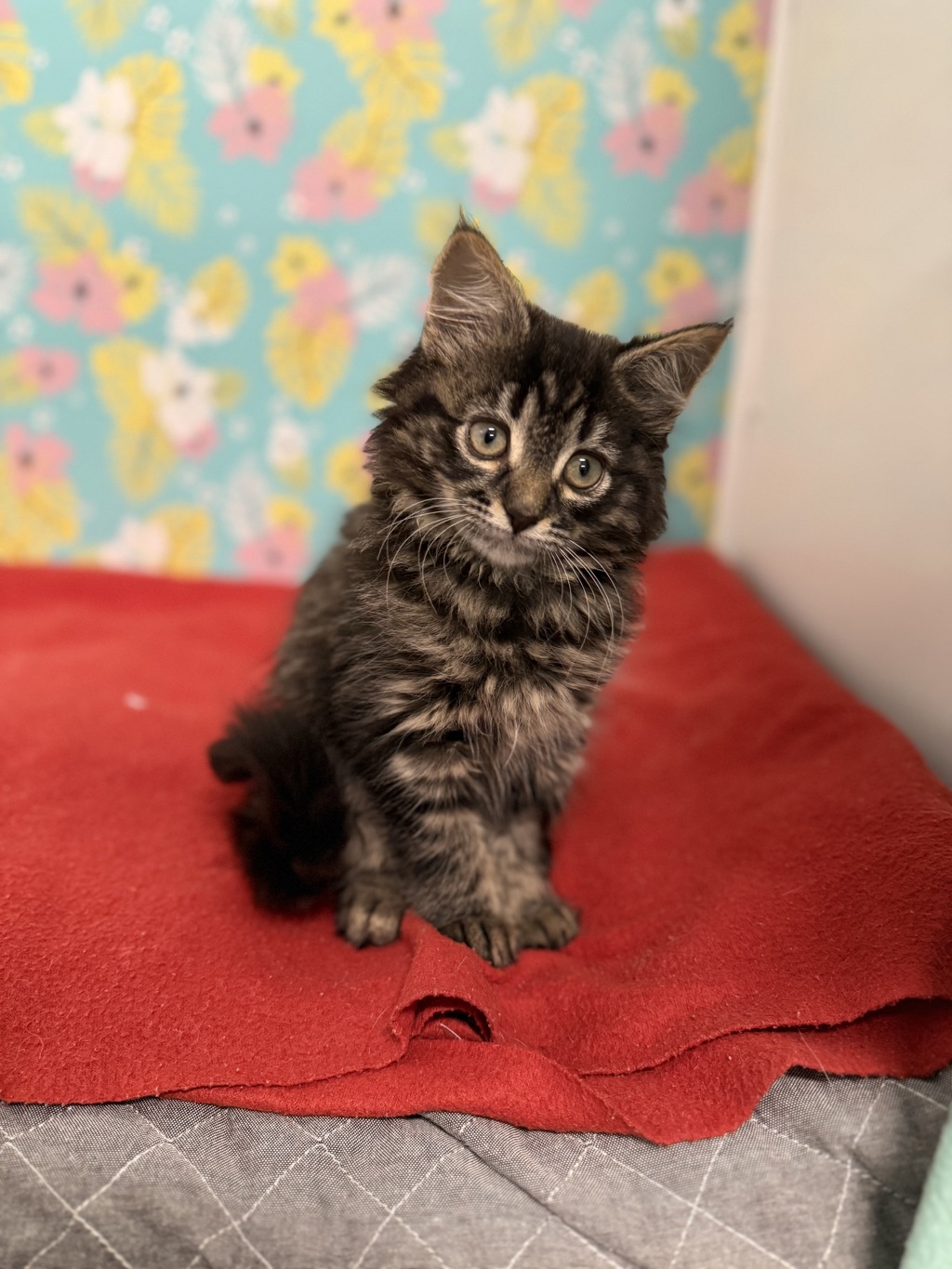 Jessie is a bold and brilliant kitten who's bursting with confidence and curiosity. From the moment she arrives, she makes her presence known with a cheerful chirp and an adorable "handshake" - yes, she literally holds her paw out to greet you!
