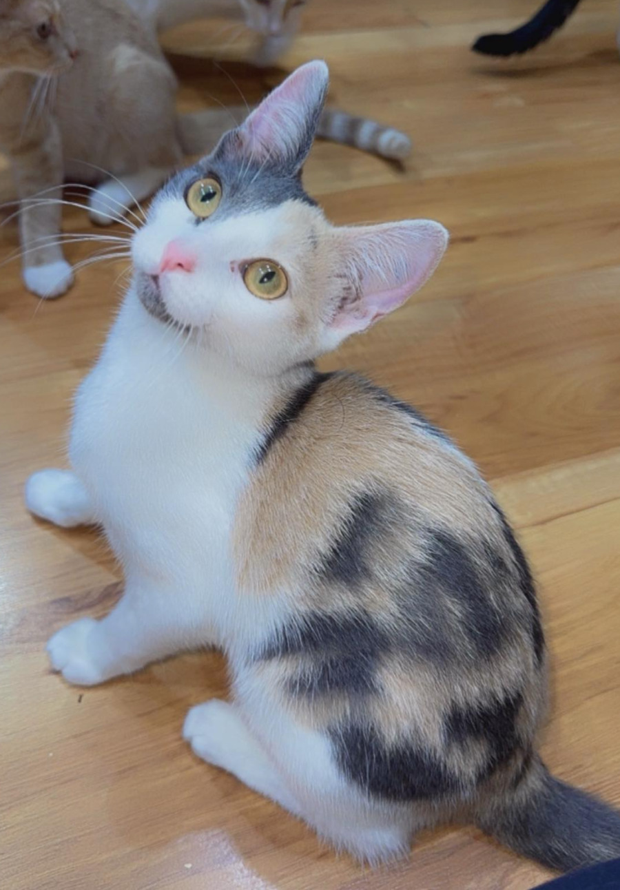 Say hello to Cinnamon, a gorgeous young dilute calico kitten, born in October 2024, and already bursting with personality! With her soft, pastel fur and bright, curious eyes, Cinnamon is as sweet as her name—but don’t be fooled… this girl’s got spice too!