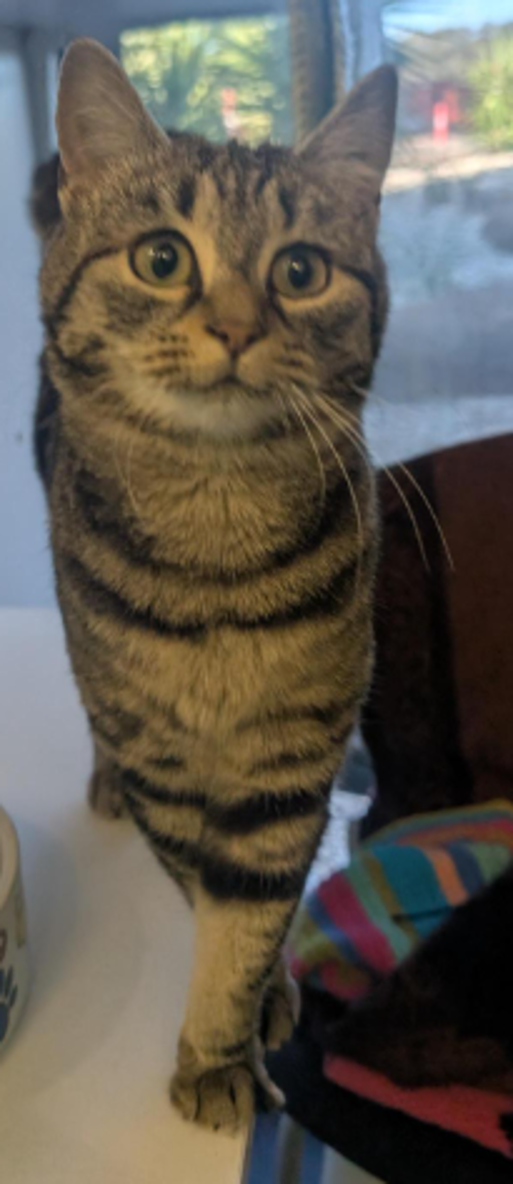 I am Lara - a 12-month-old, sleek and stunning grey tabby with eyes as sharp as my reflexes and a heart just waiting to be discovered.