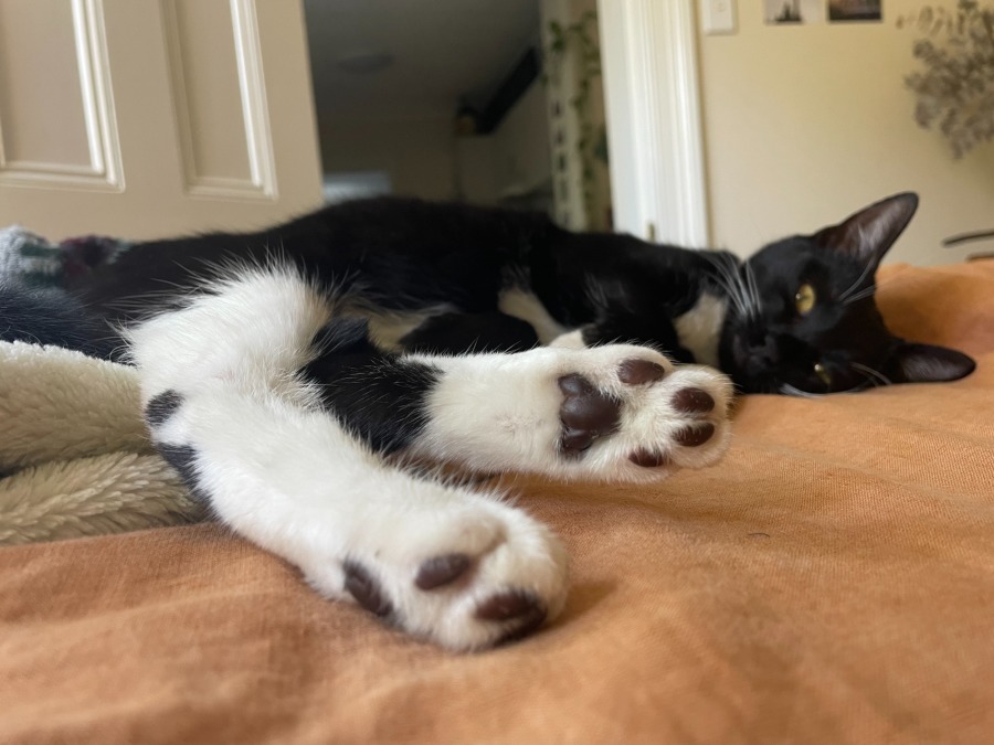 She’s an active and lively girl who loves to play with her toys and bound around when she’s feeling a spark of energy. Once she’s all tuckered out, she’ll seek out her humans to snuggle up with and will have a long peaceful nap by your side. She’ll happily cuddle up under a blanket with you and loves to sleep right on top of you, and just generally wants to be near you no matter what you’re doing.