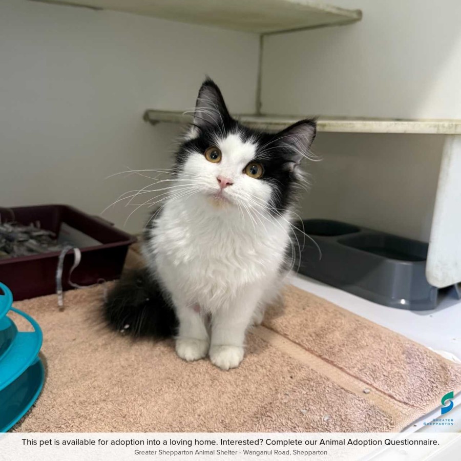 At 4 months old, Binky is a black and white beauty with a heart full of love! This sweet and affectionate little girl adores attention and will happily curl up in your lap for snuggles or follow you around just to be close 💕