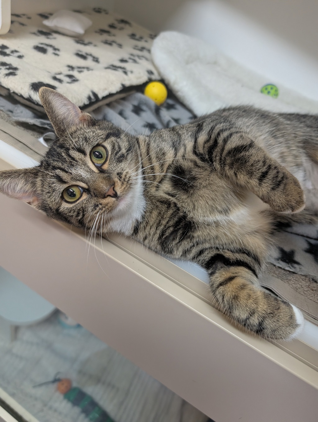 Say hello to Milly, a one-year-old tabby with a heart as big as her purrs! This sweet girl is full of love and playful charm. One of her favourite things to do? Roll around on her back, paws in the air, inviting you in for some quality belly rubs-a rare treat from a cat, but for Milly, it's just her way of saying she trusts you.