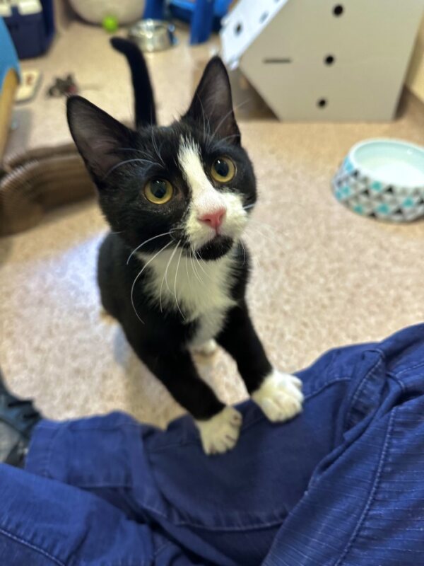 Hi, I’m Wheeler! I’m a sweet, shy kitty looking for a patient, loving human to call my own. My early life wasn’t the easiest, as I spent my days as a stray and didn’t get the chance to experience the warmth and security of a home like many other kittens. Because of this, things like cuddles, attention, and having a safe place to call home are still new to me.