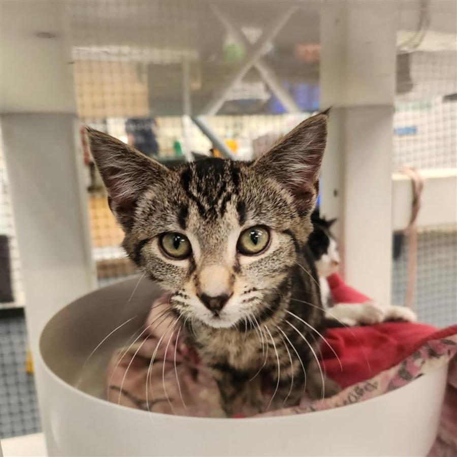 Meet Mia, your future bundle of joy wrapped in a soft, fluffy coat! Mia is an adorable cat with a heart full of love to offer. Her affectionate personality is sure to brighten your day as she becomes a cherished member of your family.