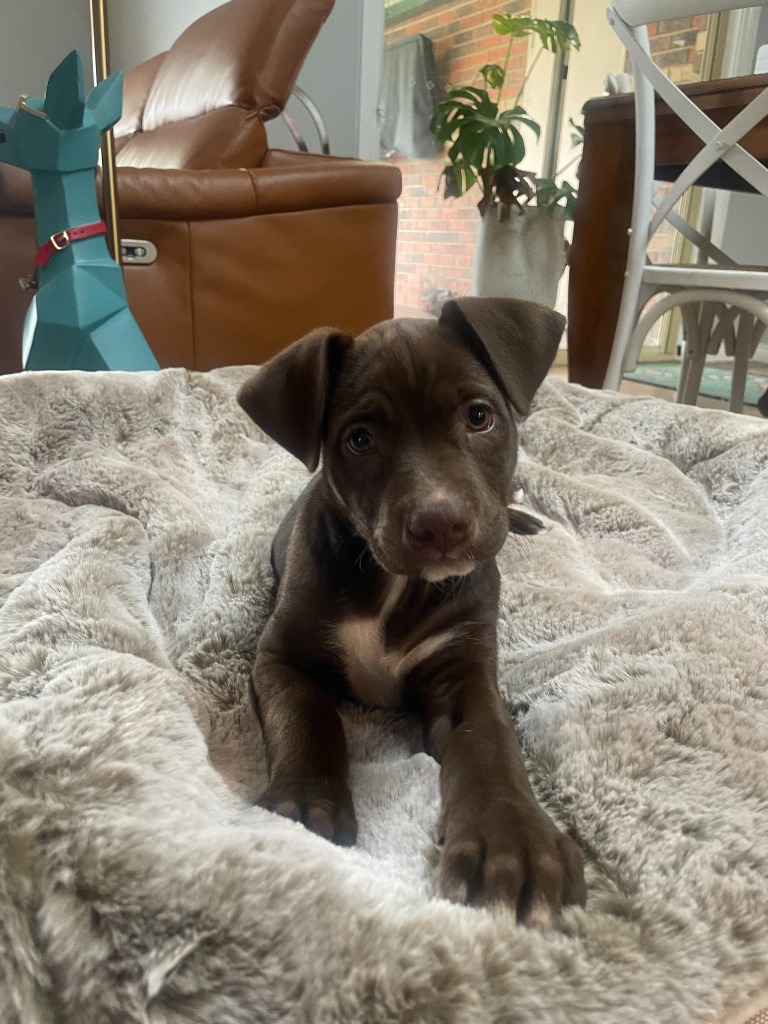 Indigo is a smoochy, energetic, confident and playful puppy. She has a lovely nature and would suit most households experienced with dogs. We are looking for a home where her people will commit to ongoing training, socialisation and exposure, ensuring she can grow up to be a well-rounded and happy pooch! At this age, she's not suitable to be home alone during work hours. Indigo currently shares her home with 2 siblings and 2 large breed adult dogs.