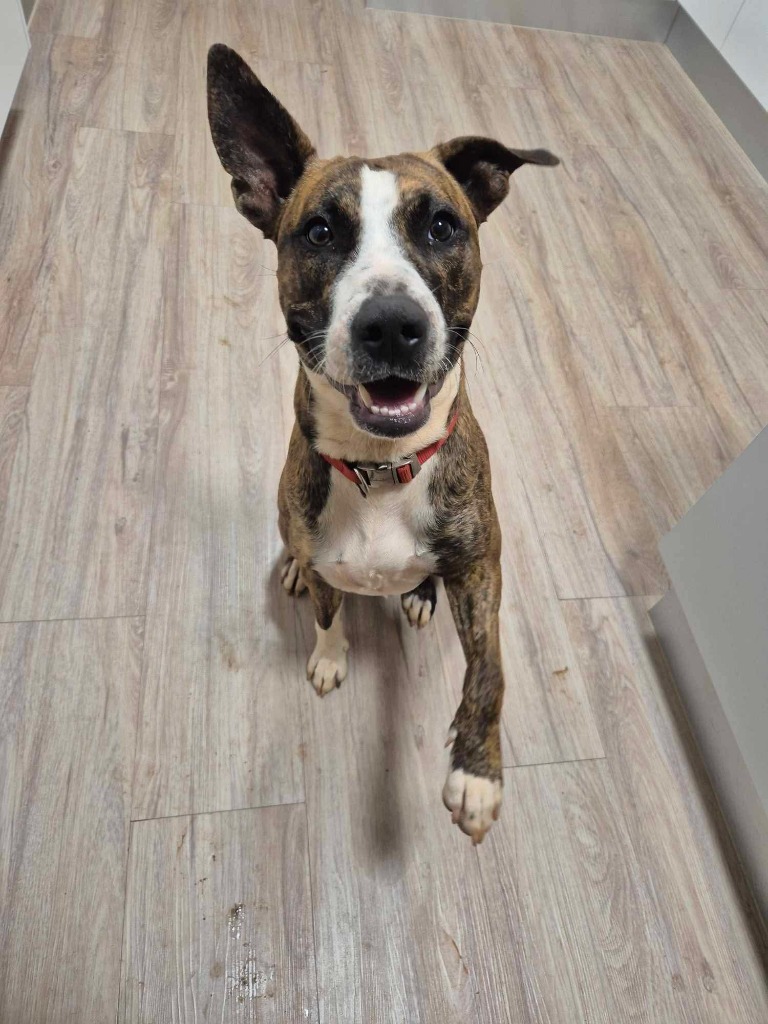 I love running and playing fetch, and I know how to sit and shake paws. I can play by myself, but I also like having dog friends.