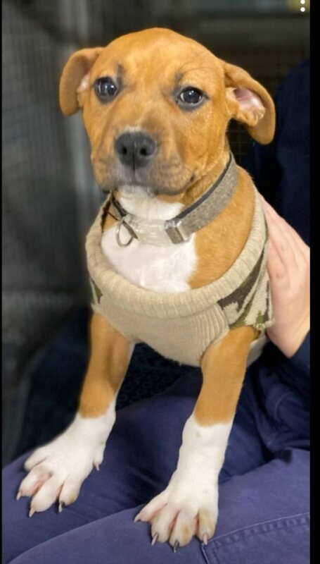 Leo is a gorgeous male staffy pup with the cutest white socks and an even cuter face. He has had a rough start to life, but you would never know it - this little lion-hearted guy has been thriving in foster care.