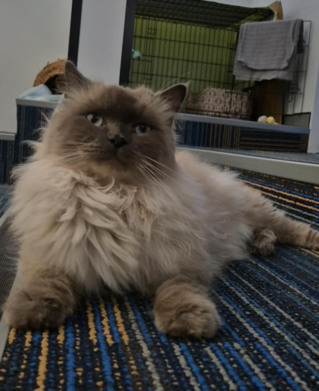 Big Kahuna is calm, affectionate, and thrives in a quiet, predictable environment where he can be the center of attention. Like most Ragdolls, he enjoys gentle handling and lounging in laps and would be an ideal companion for someone looking for a low-maintenance best friend with a loving temperament.