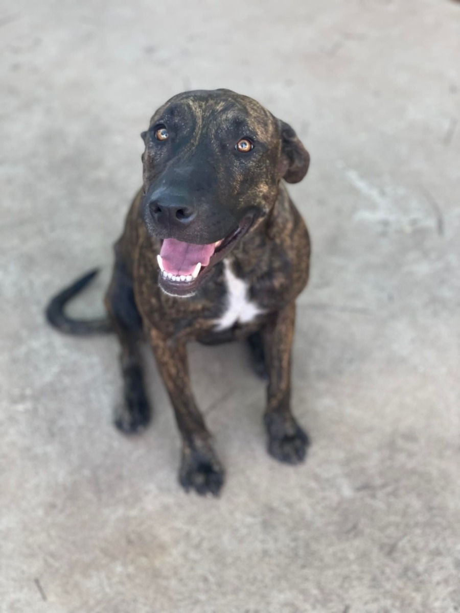 The staff at our vet named her TORA which is Japanese for "tiger" - partly because of her beautiful orange and black brindle striping and partly her indomitable spirit.