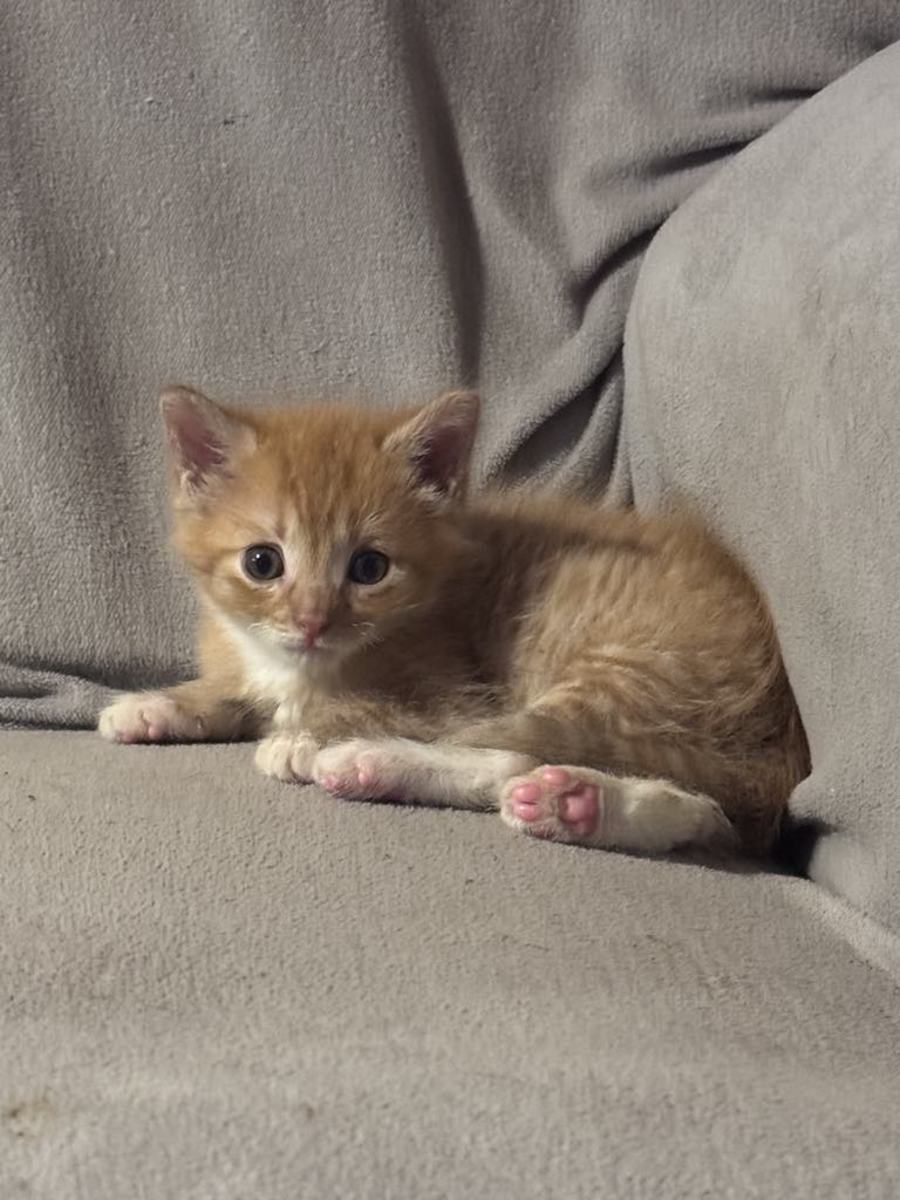 Meet Simba, a charming and affectionate young kitten currently ready for pre-adoption! This delightful little male is just five weeks old and will be ready to join his new family in mid-June. Simba, along with his brother, has been lovingly hand-raised, making him an incredibly sweet and loving companion.