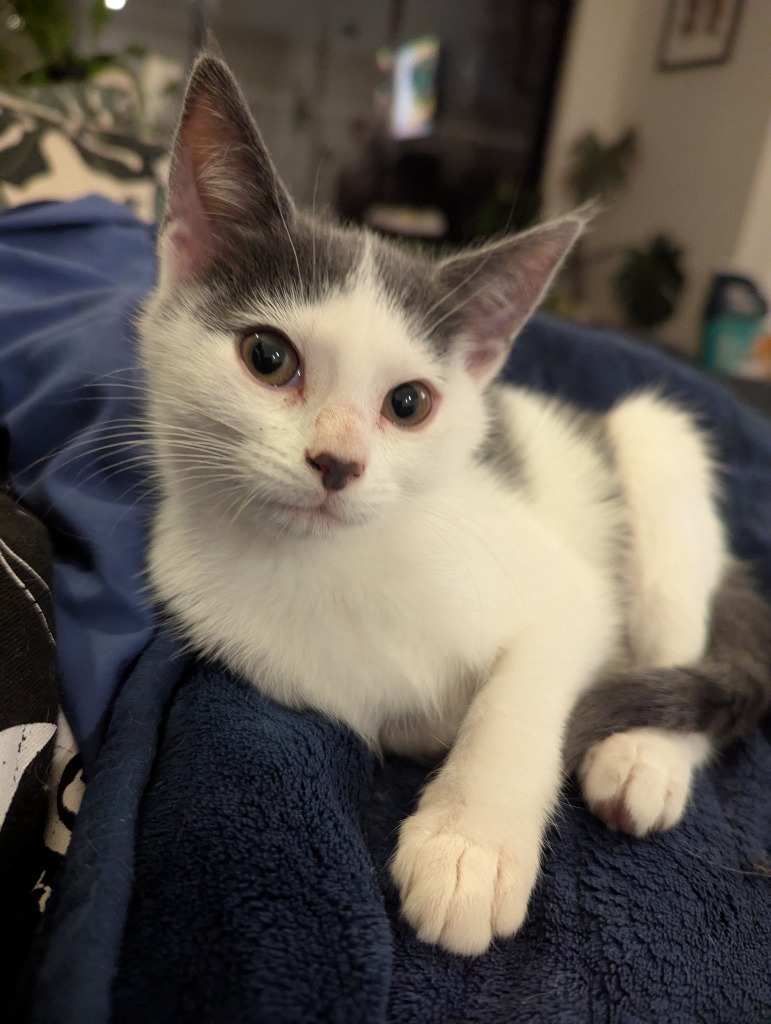 Minnie and her siblings were found under a house at just 5 weeks old. She has blossomed into the most beautiful kitten. She has oodles of energy and loves to play. She would love a home with a feline companion, or to be adopted with her sister.