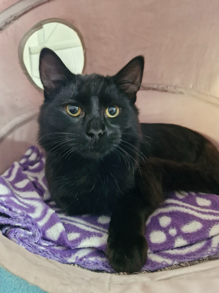 Autumn is a striking black cat with a soft, velvety coat and eyes that hold a world of untold stories. Arriving at Just Cats as a stray, he was initially reserved, unsure of the world around him. His journey took a turn when he was diagnosed with ringworm, but after six weeks of dedicated treatment, Autumn has emerged stronger and more affectionate than ever.