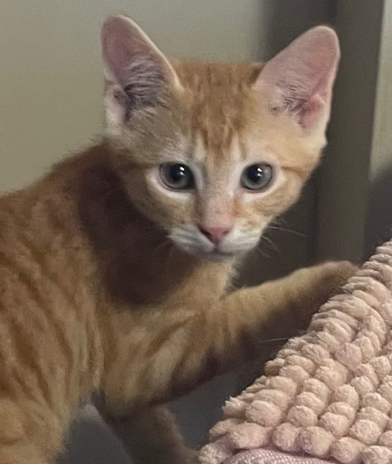A playful little dude who has loved causing chaos with his litter mates, Cedar is very confident with the older resident and foster cats and tolerant of the small house dog. He loves a kitten wrestle and stalking the older cats and little dog (and dust?lights?whatever it is that cats see when we're sure there's nothing there to chase) and is on a mission to eventually claim the highest spot on the cat tower.