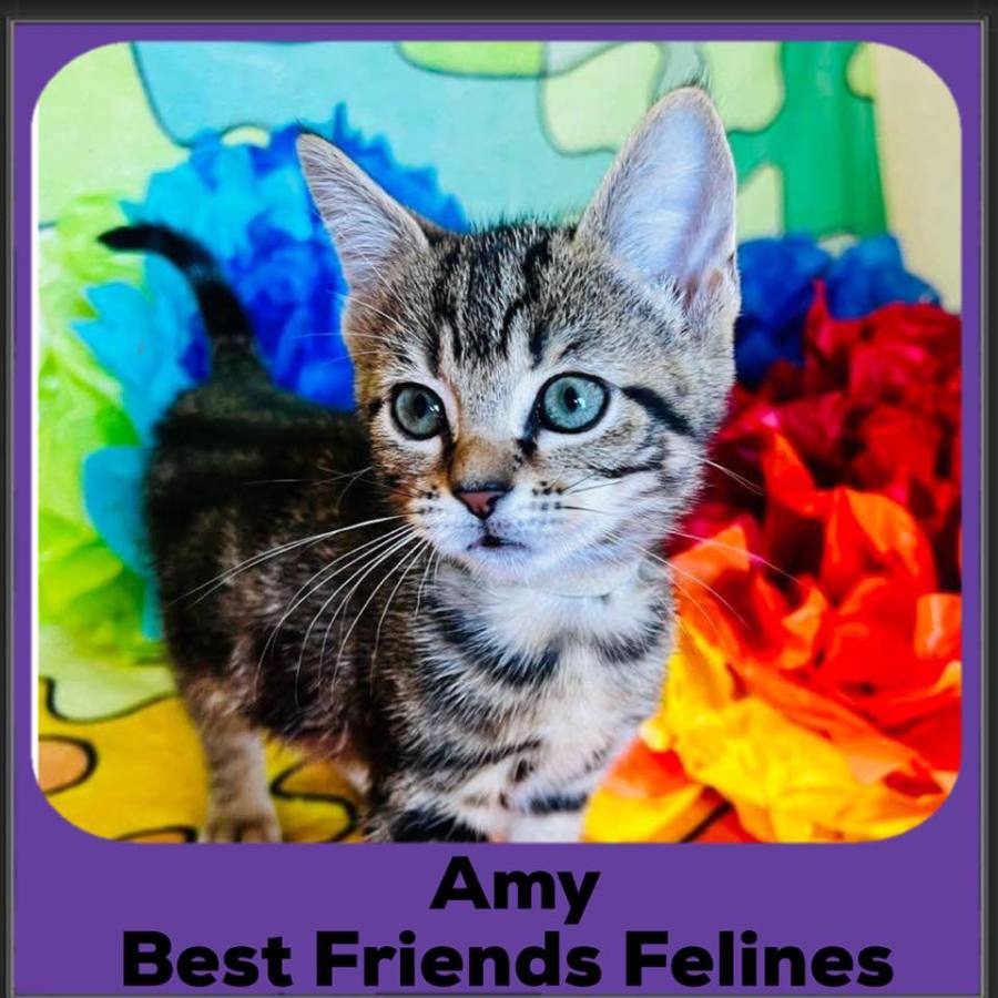 Amy is the perfect blend of playful and affectionate. One moment she'll be exploring every nook and cranny of her space with boundless curiosity, and the next she'll be curled up in your lap for snuggle time. Her sweet nature shines through in everything she does.