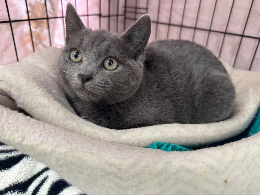Ronaldo is 3.5mth old Russian blue kitten- came from a breeder last of the litter .