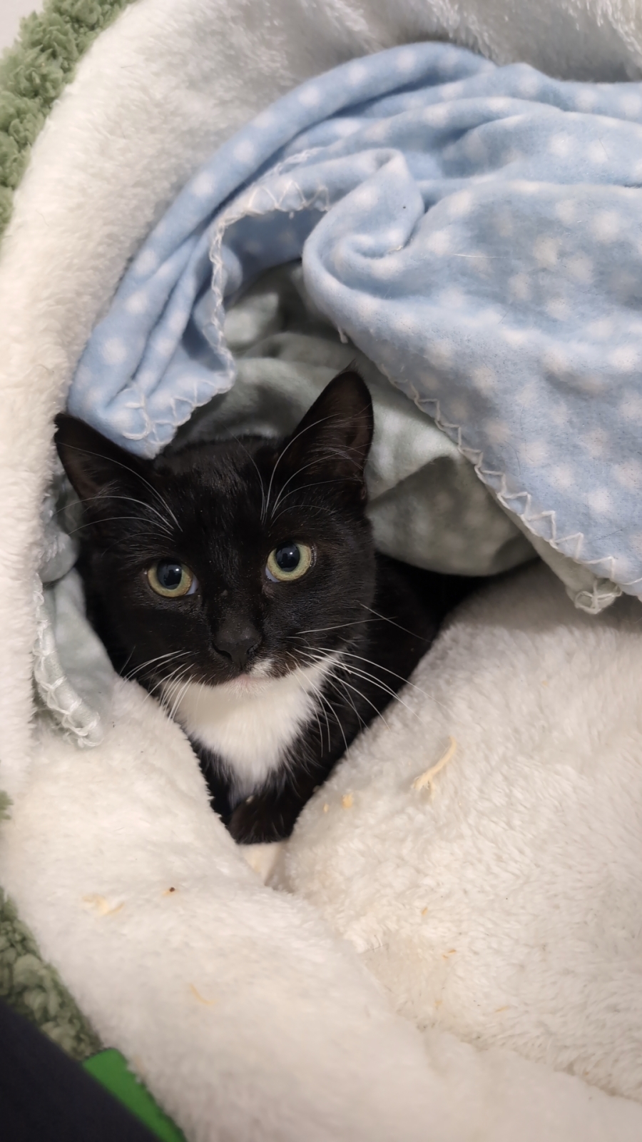 Meet Socks, a gentle and timid soul who’s currently beginning to unfurl his personality in a nurturing foster home. Since late May, Socks has been on a journey of adjustment, slowly learning to trust and explore his environment at his own pace. Though on the shy side, Socks shows clear signs of curiosity and gradual adaptation in his foster care setting. With a bit more time and patience, Socks will no doubt blossom into a loving and devoted companion.