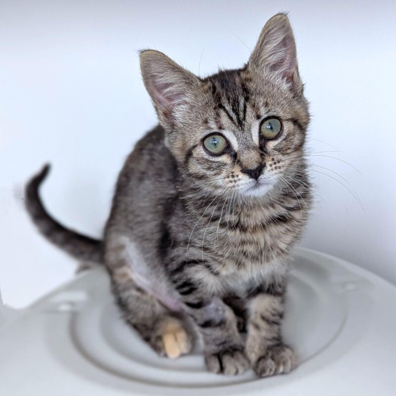 Hello there, my name is Milkshake! I'm a playful female Domestic Short Hair kitten, just 2 months old. I may be small but I'm filled with boundless energy and curiosity. I'm always on the lookout for new adventures in every corner of the house. I'm also quite the cuddle bug and I love to snuggle up on a warm lap after a day full of exploration. I'm still a baby, so I'm learning a lot about the world around me. I'm fascinated by the swish of curtains, the rustling of paper, and the smell of fresh air when a window is opened. I dream of having my own forever home where I can grow, play, and learn more about life. I'm also quite the fashionista - my fur is as smooth and creamy as, well, a milkshake! I promise to fill your life with joy, love, and lots of purring. Adopt me and let's start our purr-fect adventure together!