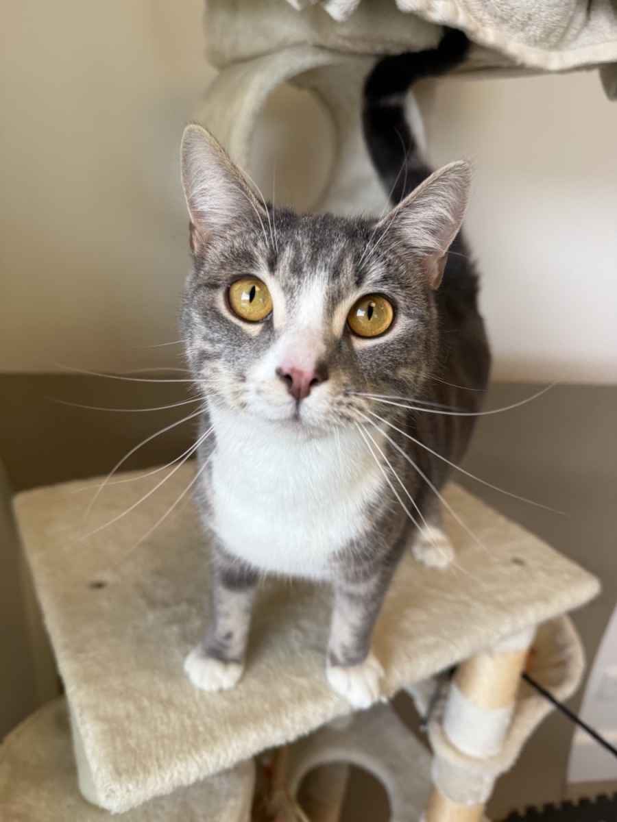 At just around 1 year old, Gandalf may not come with a staff or a long grey beard, but he does bring plenty of magic into every room he enters. With soft silver fur and wise, curious eyes, Gandalf is a playful, affectionate young cat who’s ready to cast a love spell on his forever family.