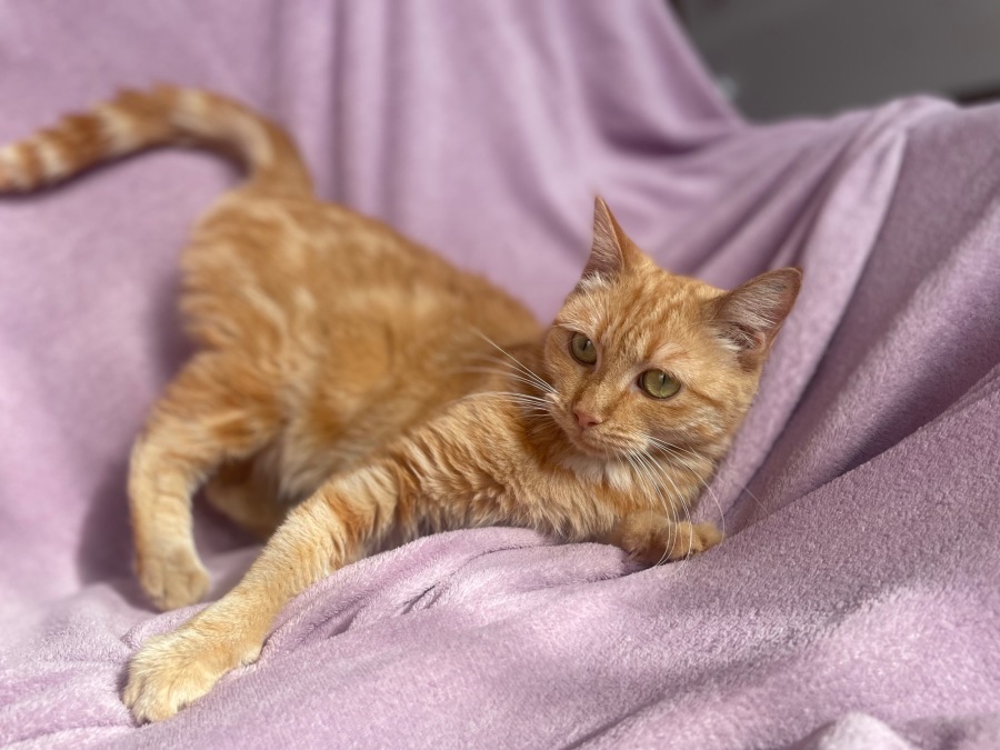 This sweet and beautiful young ginger female is about 1.5 years old. Saffron will make a lovely addition to most homes. She is quite shy at first but young enough and adaptable enough to adjust. She loves pats and belly rubs and is great with children and other cats. Hasn’t been tested on dogs but I think she would be fine (if the dog is cat friendly of course!). She happily lives indoors and is available to an indoor home only.