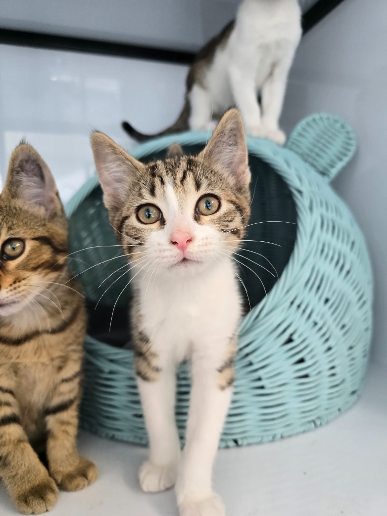 Lebron arrived to us along side his siblings, Neymar, Steph and Roger through our last litter program, after a little jab and snip he's now ready to find his forever home. He is a bold little tabby and white boy who has the loudest purr, this leggy little man will slam dunk his way into your heart in no time!