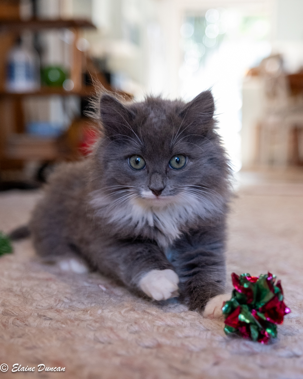 Pudding's favourite toys are things she can bat around the room, she loves balls, but will happily bat around lip balms, hair ties and pens, hitting them and then chasing after them to hit them again. Pudding has a very loud purr engine and it's always easy to tell when she is happy. She also has an adorable habit of looking up at her humans and reaching out with her gorgeous, fluffy paws to show her love.