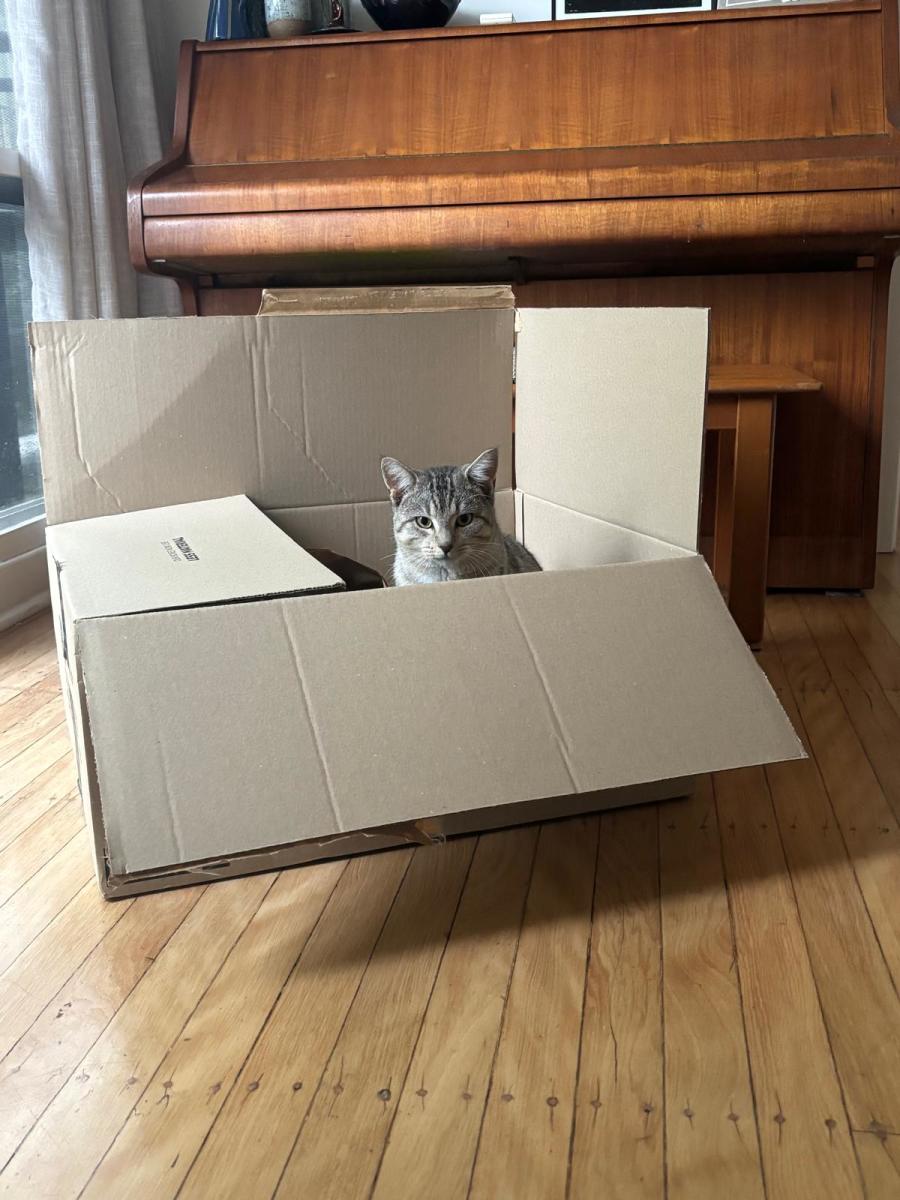 Benji is a perfect litterbox user, and is well trained at using vertical scratching surfaces. He is the first cat we've known not to scratch the couch!.