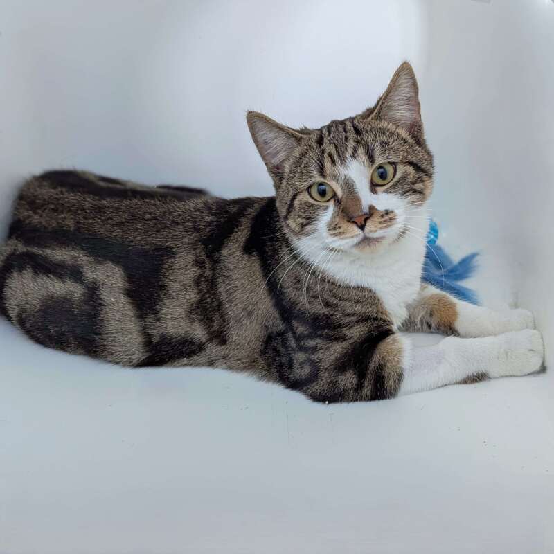Hello, my name is William! I'm a handsome, 4-month-old male domestic short hair kitten with a medium energy level. I'm full of curiosity and love exploring my surroundings. I may be young, but I've got a lot of love to give and I'm ready to find my forever family. I don't have any known issues with children, so a home with mini-humans would be just fine for me. They might even become my new favorite playmates! I enjoy playing with my toys and would be happy to entertain you with my adorable antics. Though I am still a kitten, I'm not overly hyper. I have a perfect balance of playfulness and calmness. I love to play, but I also love snuggling up for a good nap or a quiet time with my human. So, if you're looking for a little fluff ball to add joy and love to your home, I'm your guy. I can't wait to meet you and start our life together! Calm and quiet household