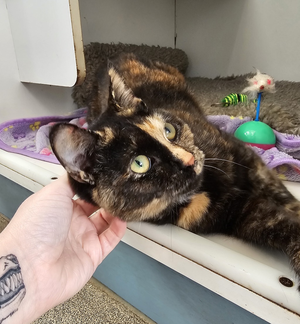 Say hello to Bobett, a beautiful young tortoiseshell girl with a heart as big as her personality. With her striking mottled coat and bright eyes, Bobett turns heads-but it's her warm, affectionate nature that truly wins hearts.