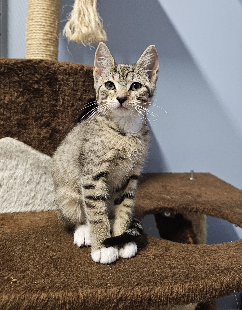 I have perfected the art of the irresistible purr. It's like my secret weapon for getting all the cuddles and chin scratches I could ever want. Life's just one big, exciting string of moments, and I'm here to make every second count - whether I'm chasing my tail or sharing some purr-fectly quiet time with my favourite humans. So, if you're up for a bundle of furry fun and a lifetime of companionship, please consider adopting me!