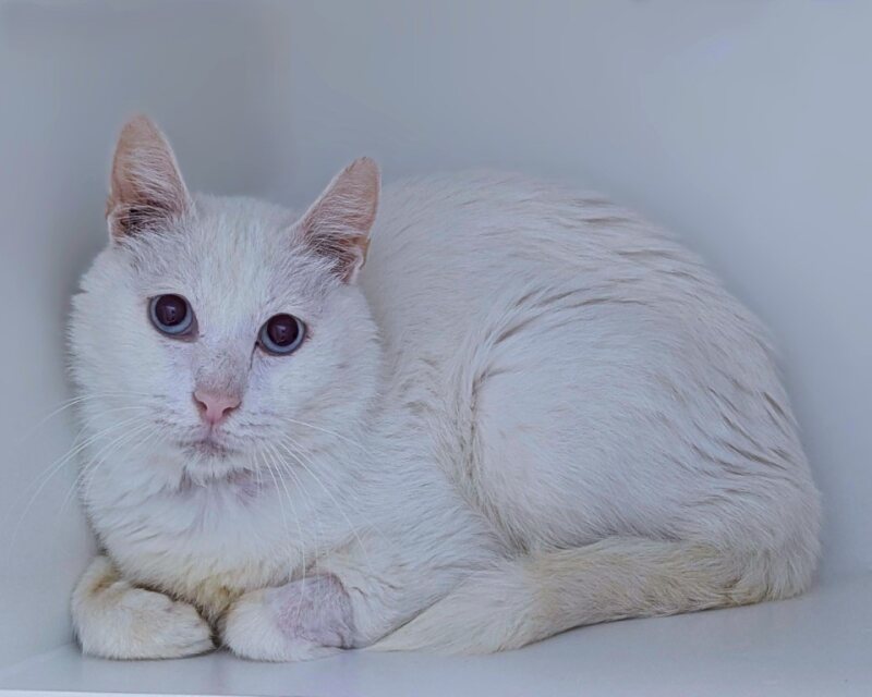 Meet Benji, a stunning white cat with a sensitive soul and a quiet presence. Benji is looking for a calm, understanding forever home where he can feel safe, respected, and loved on his own terms. He’s not a typical lap cat, but he does appreciate gentle, consent-based interactions and the space to decompress when he needs it.