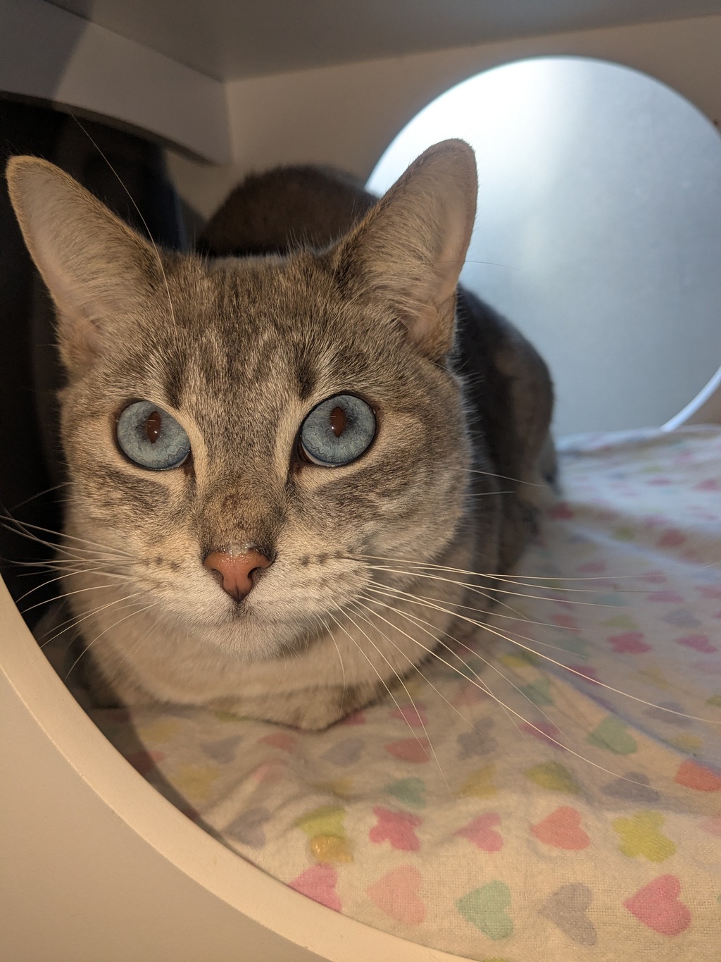 Hello, I'm Juniper - a gentle soul with a heart full of love and a resting puss face, just waiting for the right person to share it with. 🌸🐾