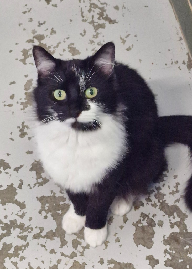 Daisy is a 2-year-old black-and-white tuxedo cat who has blossomed into a confident and affectionate companion. Originally surrendered alongside her feline friends Sirius and Lucky, Daisy has adapted beautifully to her new environment. She now adores human interaction, often rubbing against your legs and seeking out smooches. Her gentle purrs and loving nature make her the perfect addition to any home. Daisy would be ok with other cats and other children with a slow introduction but is untested around dogs. Come and meet her at our Longford Centre.
