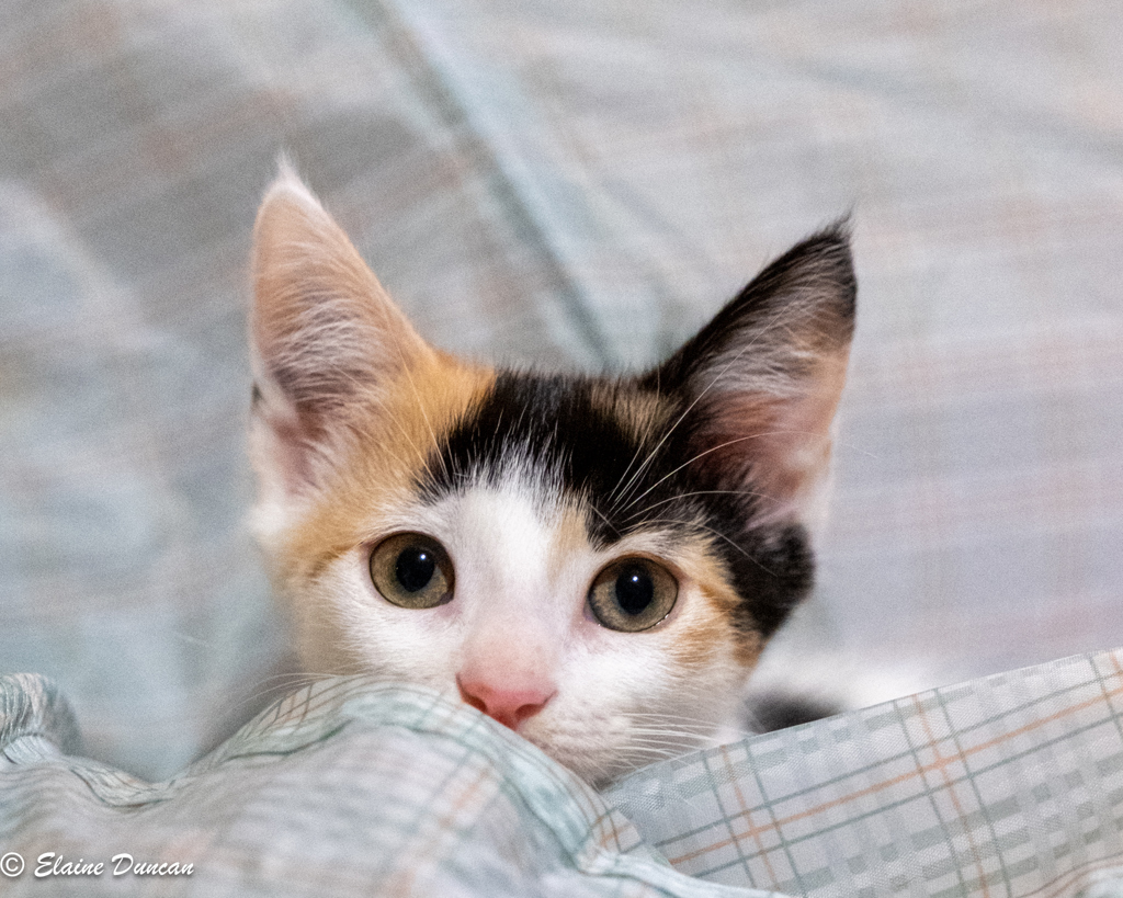 Meet Ginger, a striking little girl with beautiful calico markings, warm amber eyes and quirky char. She's a playful spirit who brings laughter everywhere she goes. Ginger is independent by nature, with a sweet, gentle side that shines through as she blooms