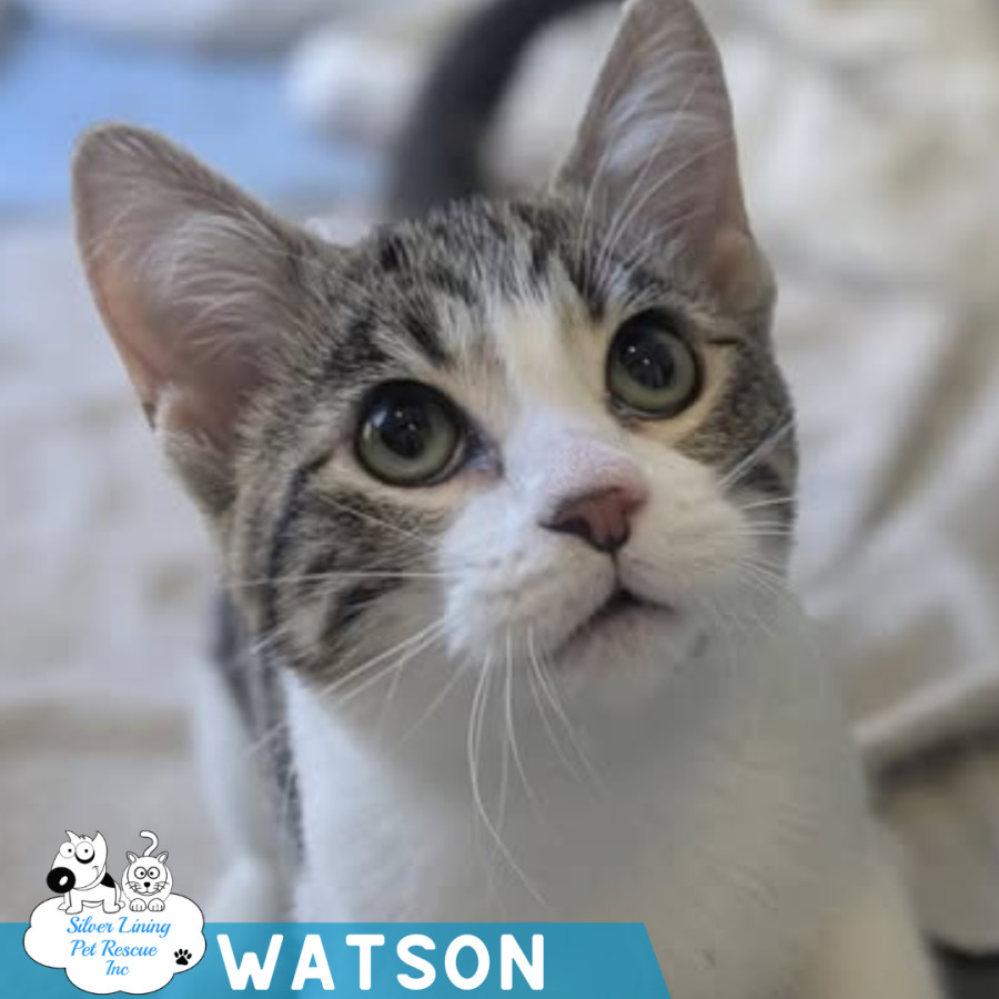 Watson is a confident, affectionate little guy who is now ready to find his forever home! After being dropped off at a local vet with his three siblings, he has blossomed in care and is full of purrs and playful energy.