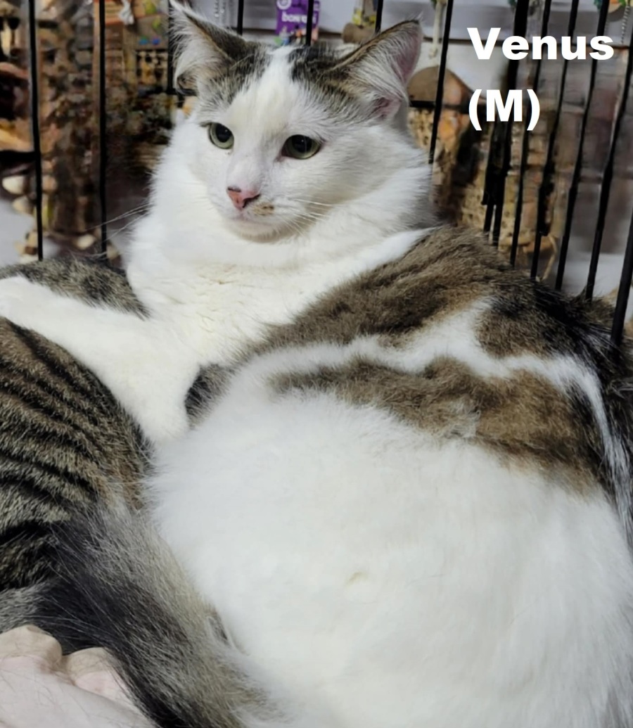 Caught in local colony. Initially very afraid and still can be hyper cautious. Likes to have a place to hide. However, he LOVES a pat. And will insist upon it. Getting more comfortable with being held but this is still a bit difficult for him. He loves to play and is good thus far with other cats. He is a beautiful cat hence the name Venus (we discovered at desexing that he is male, but we kept the name Venus to being out his gentle nature 😂) He will need to be housed in a quiet home and with someone who is patient and understanding and let him blossom in his own time.