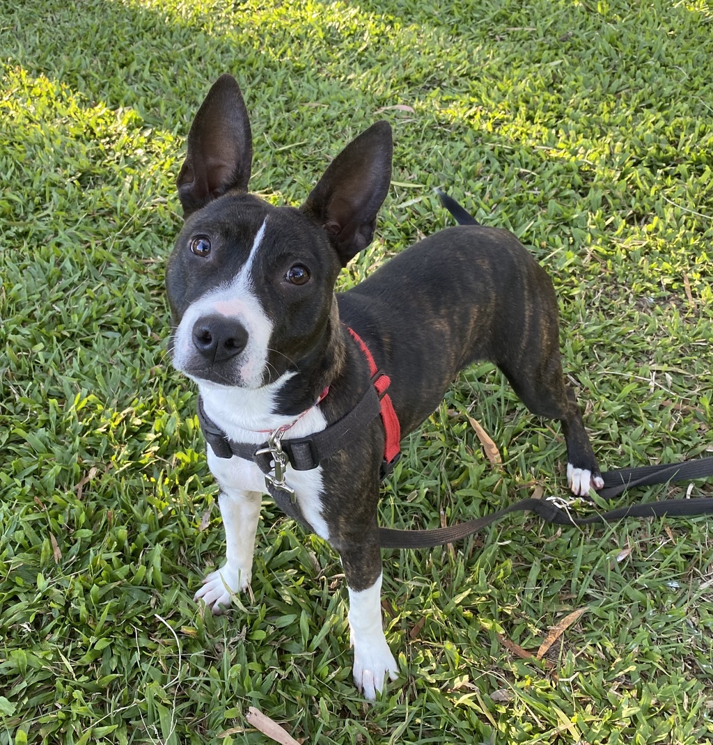 This girl is all about cuddles, playtime, and being near her people. Like most young Staffies, she's affectionate, loyal, and full of fun. Jenae is already learning her basic manners and would thrive with a family who's committed to continuing her training and socialisation.