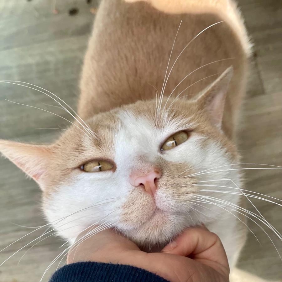Nacho is a domestic shorthaired cat who is white with cream ginger patches. He is a very large boy for a cat weighing close to 7kg! He has a beautiful dense coat that he loves to be patted and stratched.