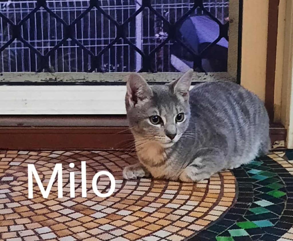 Milo is a playful and confident female grey kitten who adores people and isn't shy about making friends. She’s the first to greet you at the door and always up for a cuddle or a game. Her favourite activities include chasing bell toys, climbing to high ground places, ipad games for cats, and surprising her siblings with cheeky jump scares. Milo would thrive in a lively home where she can be the centre of attention and share her fun-loving spirit.-