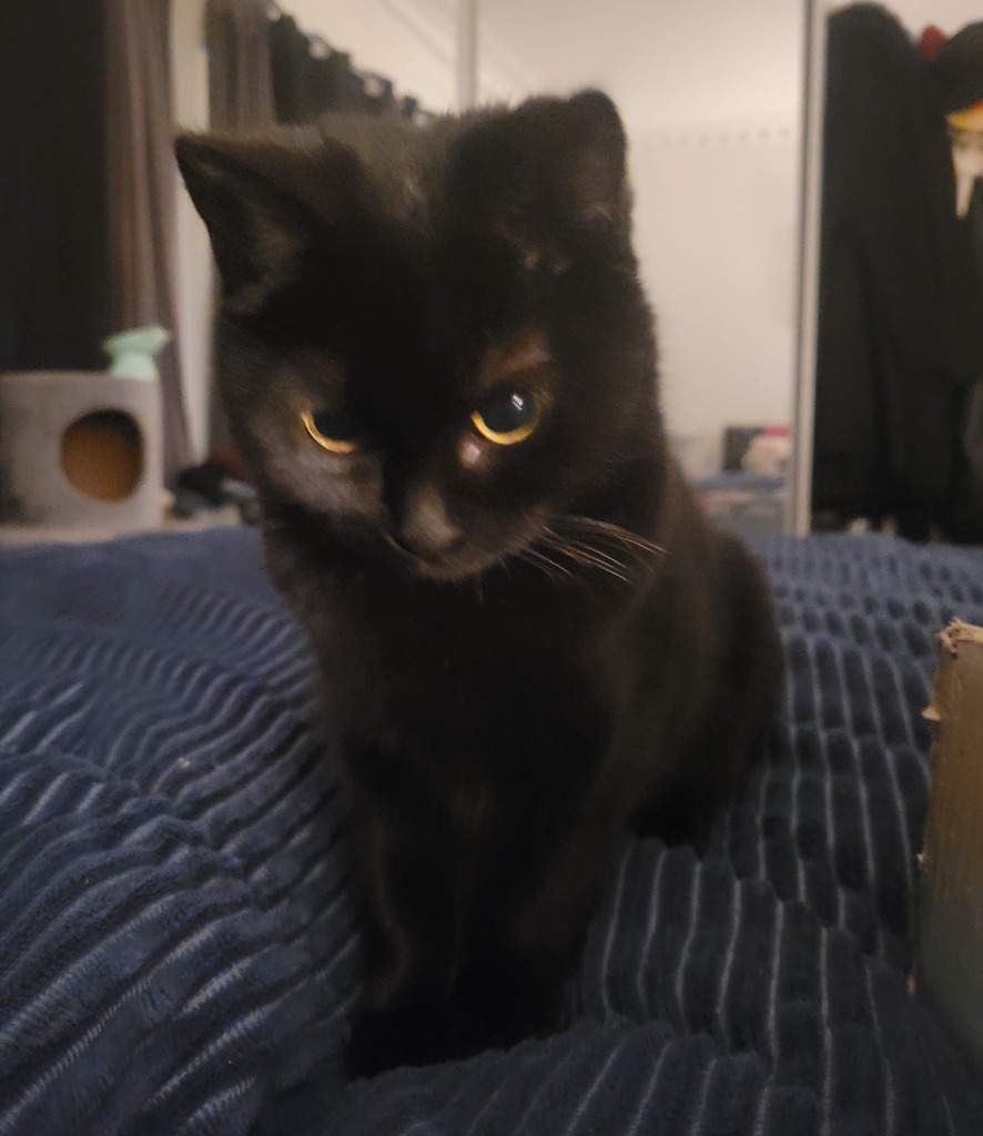 She loves to play, but mostly at night when she feels safest. And she's enjoyed the company of one of our resident cats, and plays with the other foster cat. So we think she'd be suitable as a second cat if you're cat is cool with other cats. Or adopted with another kitten that we could help you match with. But we don't think Remi would suit a home that needs a lot of affection from their pets as she's quite aloof a lot of the time.