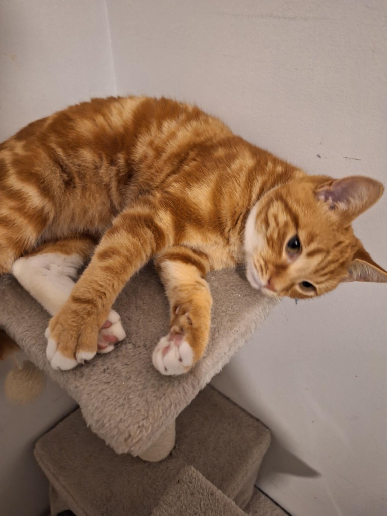 This bright orange boy is a fluffball of love who simply can’t get enough cuddles. He demands your attention with sweet purrs and those irresistible head nudges. If you’re ready for a constant companion who will happily snuggle up anytime, Gus is your perfect match.