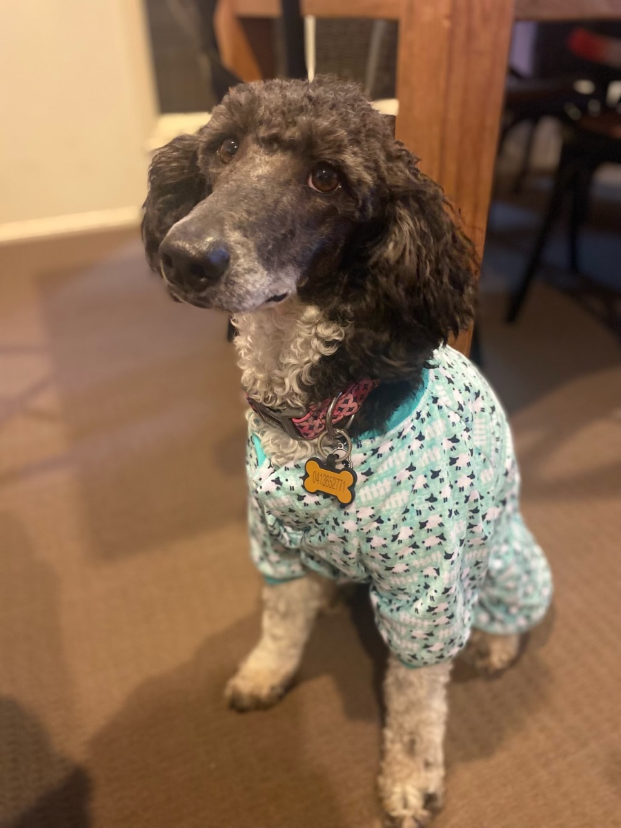 Maddy is a Moyen Poodle which is in between a mini poodle and a standard. Closer to a large mini.