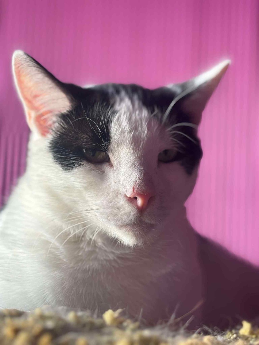 Meet Gherkin, a gentle and big-hearted feline companion ready to fill your life with love and warmth. With a calm and kind nature, Gherkin is the perfect lap cat. He adores nothing more than curling up on your lap, basking in your affection. His gentle presence and soothing purrs create the most comforting atmosphere, perfect for anyone looking to add sweetness to their daily routine.